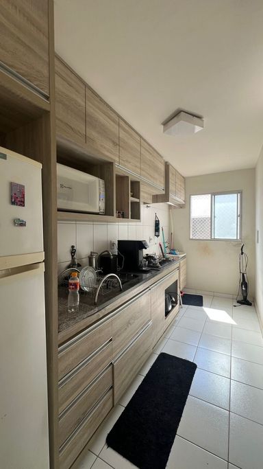 Apartamento de 48m² Reformado Piso laminado 2 dormitórios sendo um deles com guarda roupa modulado. 1 banheiro com armário Sala com cortineiro e cortina em linho. Cozinha com Lavanderia Armários na cozinha e torneira com água quente, Fogão cooktop 1 vaga de garagem coberta Gás e água incluso no condomínio O condomínio possui quadra de esportes e espaço para crianças.