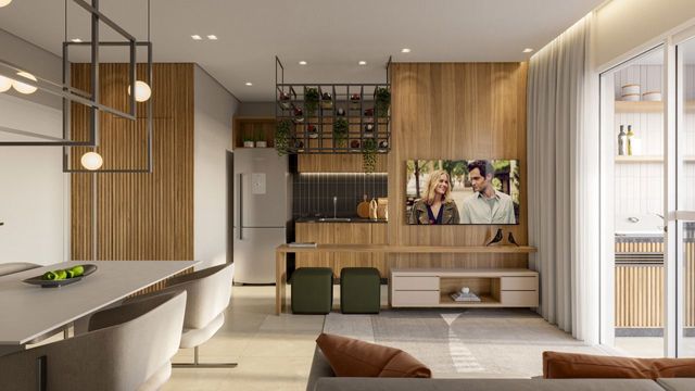 2 dormitórios, sendo uma Suíte Sala e copa conjugada Cozinha 1 vaga de garagem Rico em planejados Box Condomínio com: Piscinas adulto e infantil Playground Brinquedoteca Academia e academia ao ar livre Quadra Posso artesiano