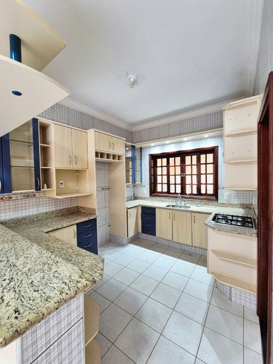 - 3 dormitórios - Sala - Banheiro Social - Cozinha ampla integrada com sala de jantar - Área de churrasco com banheiro - Lavanderia - Garagem coberta para 3 carros