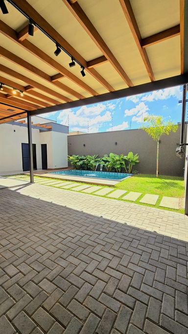 • 200 metros de terreno • 160 metros de construção • Pé-direito de 5 metros • Ambientes integrados (sala, cozinha e jantar) • 3 dormitórios (1 suíte com closet) • Área gourmet com churrasqueira • Piscina aquecida com hidromassagem • Iluminação em LED • Sistema de segurança completo • Aquecedor com reservatório de 1.000 litros • Portas internas Pormade + esquadrias Gold automatizadas • Garagem para 3 carros