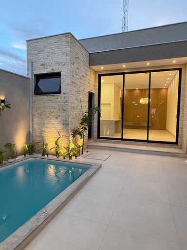 198 m2 de terreno 153 m2 de área construída Piscina aquecida com hidromassagem Ambientes integrados 3 suítes, sendo uma com closet Água quente instalada (boiler 500L) Garagem coberta para 2 carros Ambientes integrados Sala de estar e jantar com pé direito alto e marcenaria Wc social com pedra seixo Cozinha com planejados e ilha Planejados nos banheiros Área gourmet Fino acabamento Venezianas com persiana blackout automatizadas Painel amadeirados com porta mimetizada Monocomando nos banheiros com duchas instalada Porcelanatos de primeira linha 100% esquadrias de alumínio Som ambiente nas salas e garagem Iluminação moderna com lustre de cristal legítimo Preparação para ar condicionado