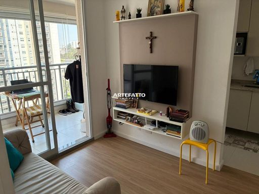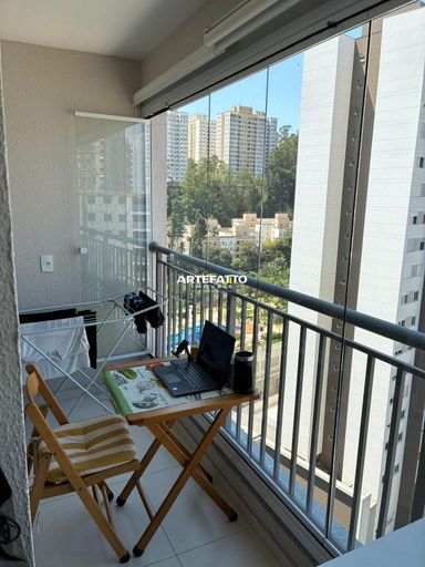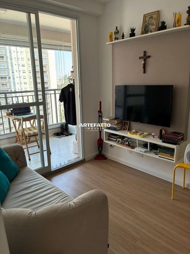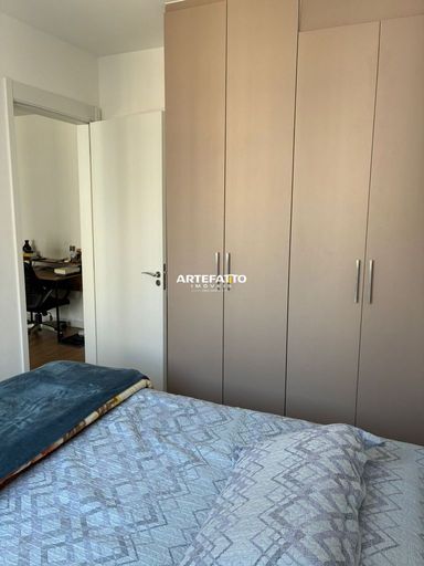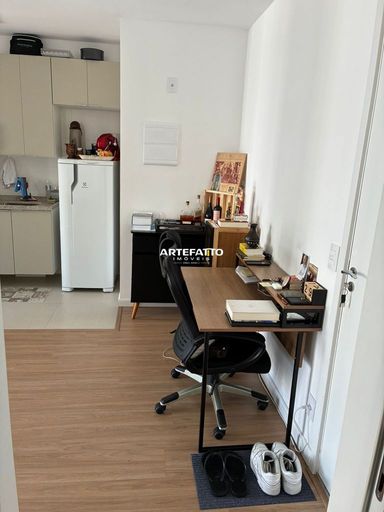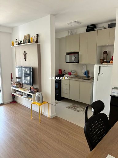 Características do imóvel • 1 dormitório • 1 banheiro • Sala com rack planejado • Cozinha equipada com cooktop • Lavanderia com pedra esculpida • Sacada aconchegante • Fechadura eletrônica • Chuveiro a gás • Preparação para ar-condicionado • Marcenaria sob medida • Luminárias instaladas em todos os ambientes • 1 vaga de garagem
