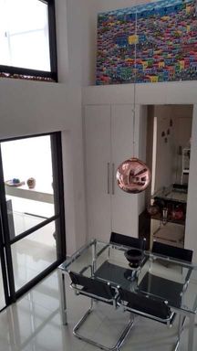 Olha a vista do apartamento!!!Há algum diferencial de acabamento? Móveis planejados Dellano, Todo em porcelanato, pias e acessórios DECA, escada em aço escovado e vidro, ar-condicionado na cozinha gourmet de 33.000 BTus, granito em preto absoluto, mobiliado ( exceto eletrônicos e TVS )Quais itens de lazer há no condomínio?Piscina, sauna - seca e a vapor - hidromassagem vinculada a piscina.Sobre o imóvel