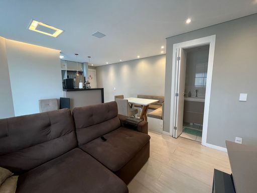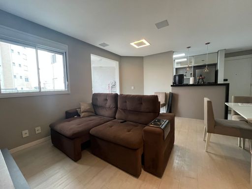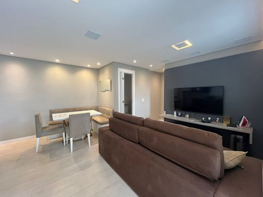 Com 65m², o apartamento conta originalmente com uma planta de 3 dormitórios, porém passou por uma reforma inteligente que ampliou significativamente a área social. O proprietário optou por integrar um dos quartos à sala, criando um ambiente muito mais espaçoso, moderno e acolhedor. Essa mudança valorizou a circulação, aumentou a luminosidade natural e deixou o espaço ideal para receber amigos, relaxar ou montar dois ambientes distintos, como sala de estar e sala de jantar.