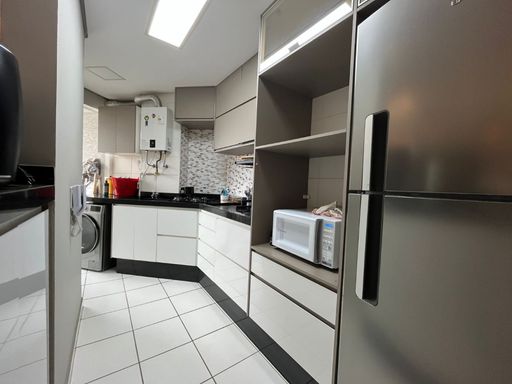 Atualmente, o imóvel dispõe de 2 dormitórios, sendo 1 suíte, além de 2 banheiros muito bem conservados. A suíte oferece conforto e privacidade, enquanto o segundo dormitório é perfeito para criança, escritório, hóspedes ou closet dependendo das necessidades do novo morador. A cozinha tem excelente aproveitamento de espaço, com possibilidade de integração ao ambiente social, tornando o apartamento ainda mais funcional e moderno.