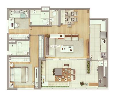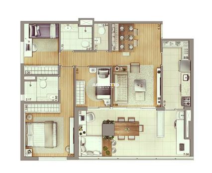 O apartamento, com 93m² , 2 quartos (podendo fazer 3) com , 2 vagas