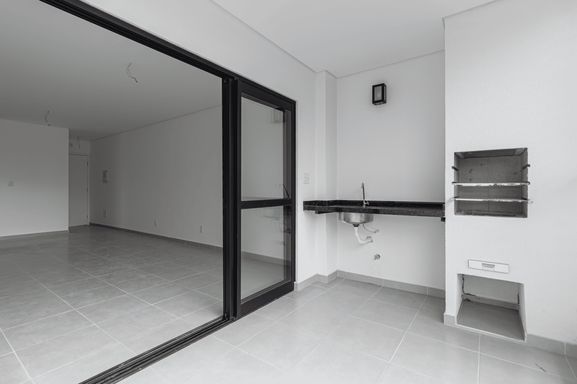 Varanda gourmet com churrasqueira a carvão