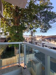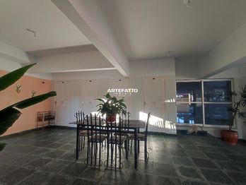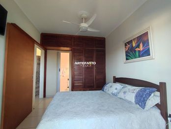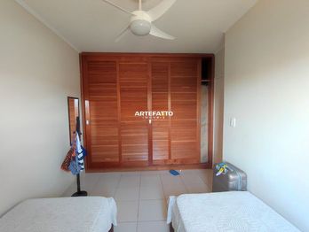 Esse apartamento de dois dormitórios, sendo uma suíte com varanda e ar condicionado, ainda conta com uma sala de visitas conjugada com a sala de jantar com ar condicionado e varanda panorâmica.
