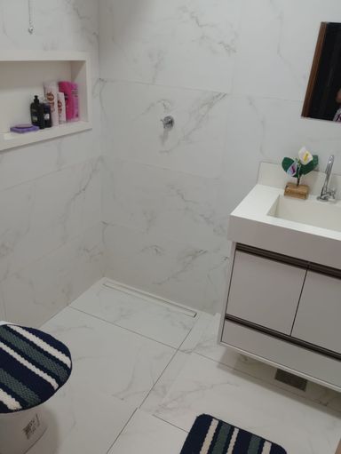 2 dormitórios, sendo uma suíte Banheiro social Cozinha com uma ilha Área de churrasco com abertura de ar Garagem para 2 carros 78 metros