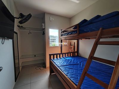 São dois dormitórios com prateleiras em vidro temperado e cabideiro o que apresenta uma maior facilidade para a higienização além de não se deteriorar com a umidade comum em regiões litorâneas.