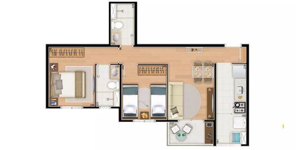 Apartamento com 2 dormitórios, sendo 1 suíte, em um condomínio estilo clube que reúne conforto e lazer em um só endereço.
