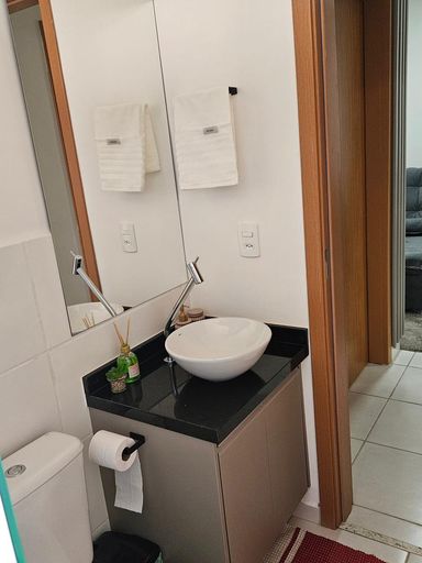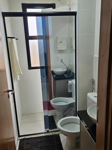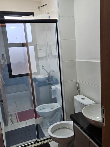 - Banheiro Social com box, armário e espelho