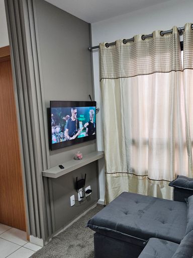 - Sala com sofá, TV, Painel