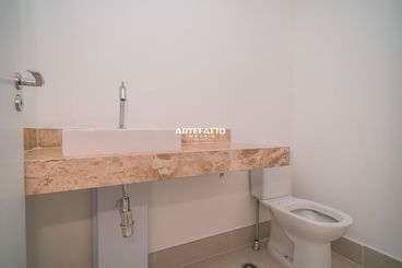 Planta de 110 m² com 3 dormitórios, sendo 3 suítes, lavabo, varanda gourmet com churrasqueira, cozinha planejada e área de serviço.