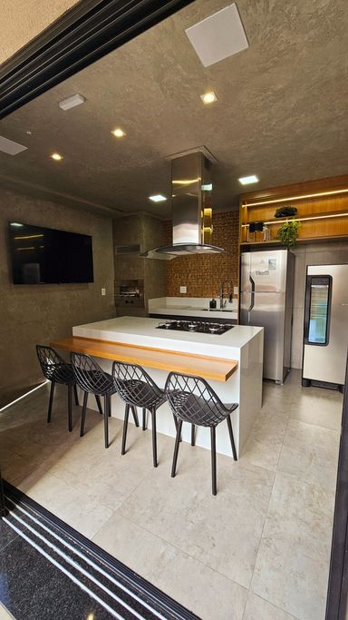 O imóvel tem 3 dormitórios, sendo 3 suítes, possui 4 banheiros e 4 vagas de garagem. Suítes com revestimento em laminado amadeirado, cozinha com bancadas em Nonoglass branco e lazer completo.