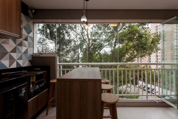 A varanda gourmet é um verdadeiro destaque: fechada com vidro, possui churrasqueira a carvão perfeita para receber amigos e familiares com uma vista livre e agradável.