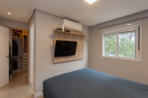 Este apartamento encantador foi totalmente reformado para oferecer conforto, elegância e praticidade. Originalmente com 3 dormitórios, foi inteligentemente convertido em 2, ganhando uma suíte espaçosa com closet ideal para quem valoriza um ambiente funcional e bem distribuído.