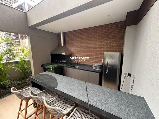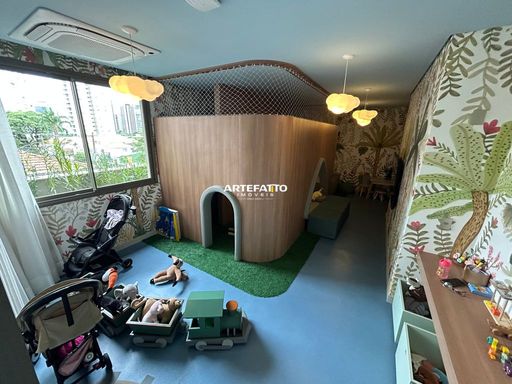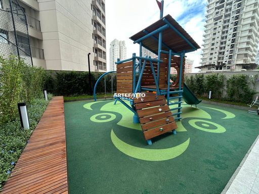 Possui área de fitness, espaço gourmet, jardim, parquinho com diferentes brinquedos, salão de festas.