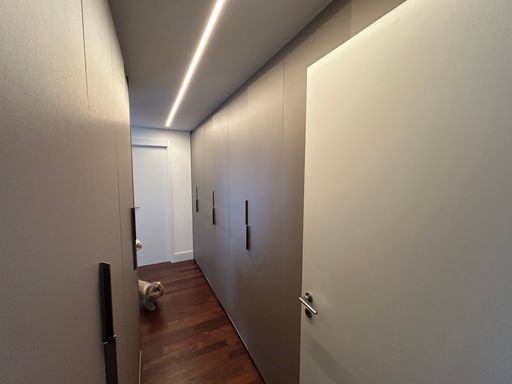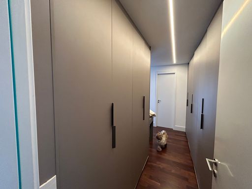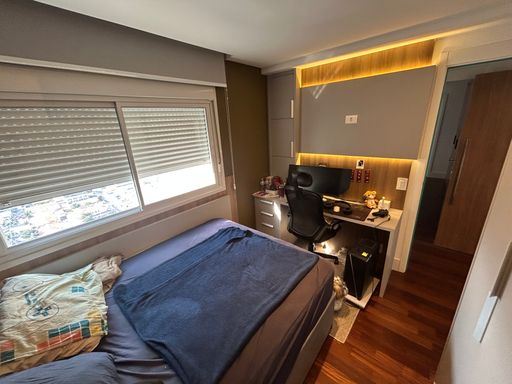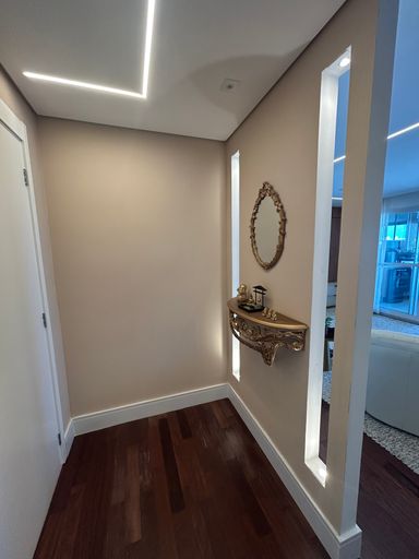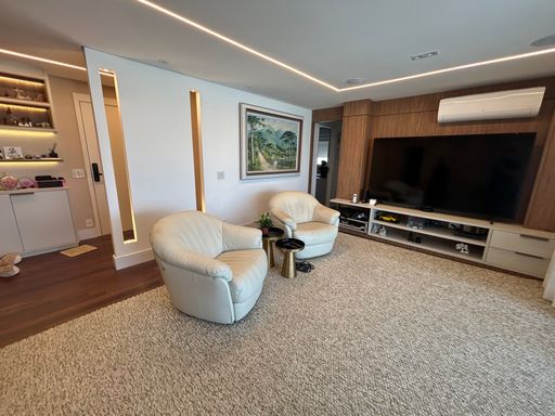 O projeto interno foi cuidadosamente pensado para oferecer sofisticação e funcionalidade. O apartamento é repleto de armários planejados de alto padrão, com excelente aproveitamento de espaço em todos os ambientes. Conta ainda com projeto de iluminação que valoriza a arquitetura e cria diferentes cenários, além de sistema de som ambiente integrado, proporcionando uma experiência única de bem-estar e praticidade no dia a dia.