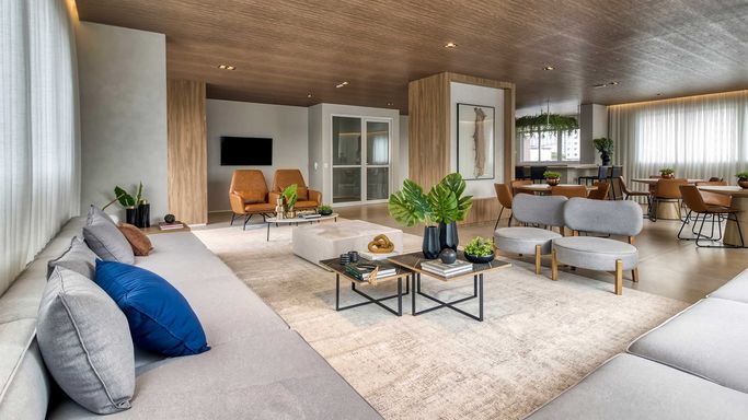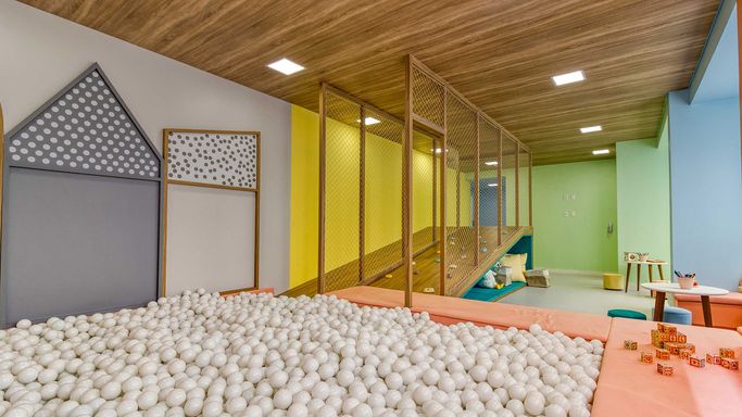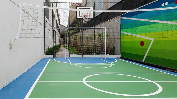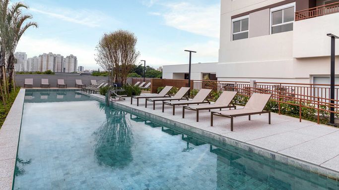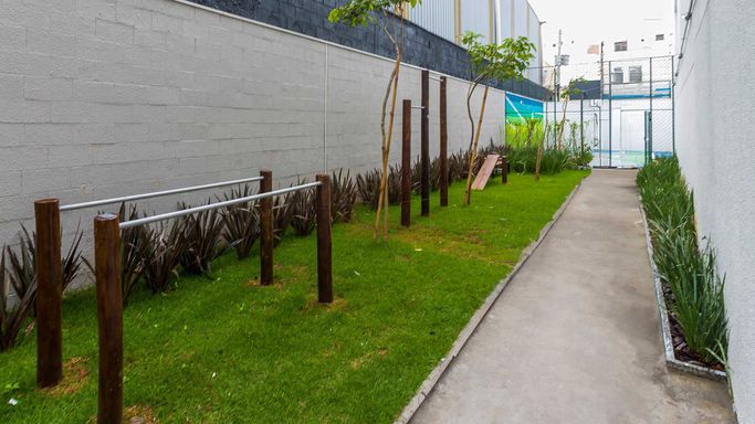 O condomínio conta com torre única em terreno amplo, oferecendo lazer completo: piscina com raia de 20 m, playground, quadra recreativa, churrasqueira, academia equipada, brinquedoteca, lounge de jogos, coworking, espaço delivery, pet place e bicicletário.