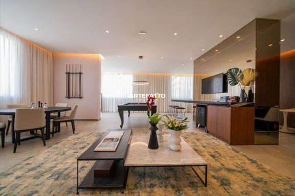 136m²- 04 dormitórios, 02 suítes, varanda gourmet, WC de serviço, dependência de empregada. Opção de planta, 03 suítes, living ampliado.02 vagas demarcadas.
