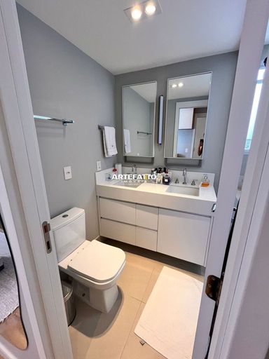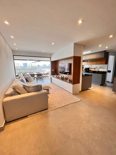 Apto está com piso e revestimento na cozinha, área de serviço, banheiros e lavabo. Faltando piso somente na sala e dormitórios.