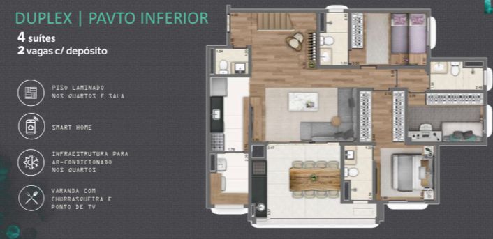 Apartamento com 4 quartos(3suite), 202m2, ao Lado do Carrefour da Giovanni Gronc