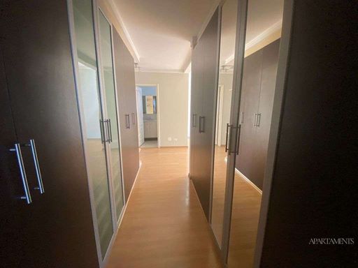 Mansão suspensa, lindo apartamento com ótima distribuição dos ambientes, sendo quatro suítes, a suíte master com banheiro sr. e sra. com hidro, armários planejados em todas as suítes e cozinha, piso de madeira nas salas, granito na cozinha, sala de estar, sala de lareira com desnível, duas varandas sendo uma gourmet, lavabo, área técnica, dois dormitórios de funcionária.