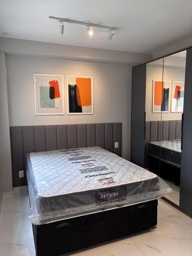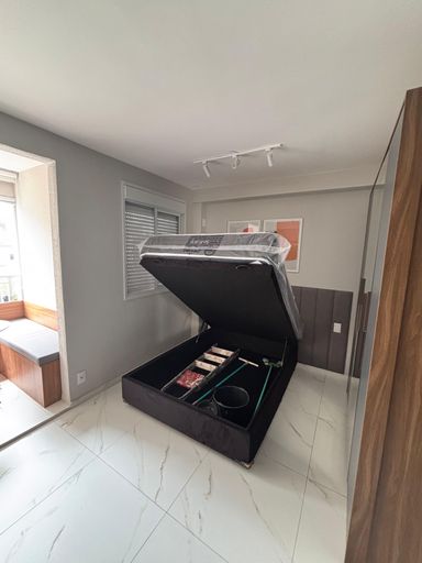 Com 25m², oferece 1 quarto, sala, banheiro), além de piso completo .