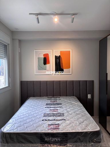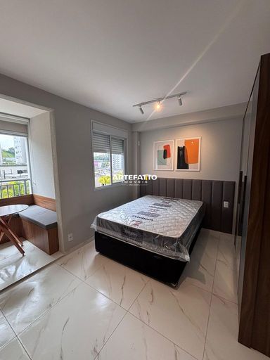 Com 25m², oferece 1 quarto, sala, banheiro), além de piso completo .