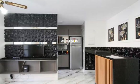 Com 25m², oferece 1 quarto, sala, banheiro), além de piso completo .