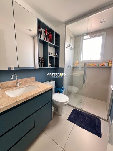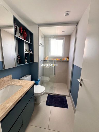 São 3 suítes, 2 vagas fixas e ar-condicionado já instalado.