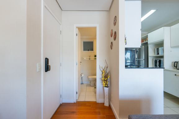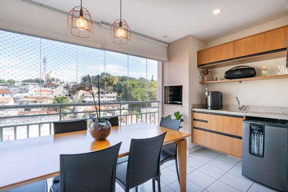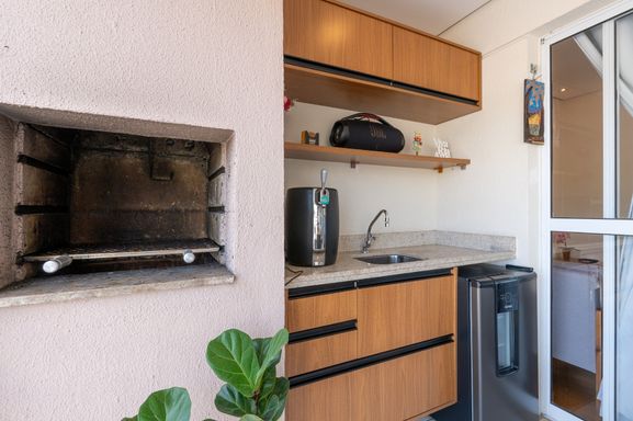 O piso em madeira na área social e íntima, confere charme e aconchego a todos os ambientes, que também contam com muitos armários planejados para garantir organização e praticidade no dia a dia. A sala com ar condicionado, proporciona conforto e bem estar. A varanda gourmet é o espaço ideal para reunir amigos e familiares com conforto e estilo.