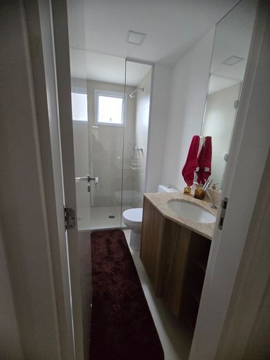 • Suíte: guarda-roupa planejado, armário no banheiro, box de vidro e espelho