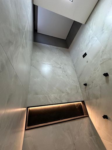 - Banheiro da Suíte com Parede de Vidro & um Lindo Paisagismo