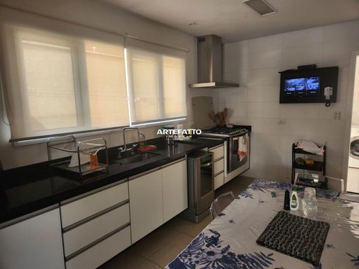 Amplo e elegante sobrado com excelente distribuição de ambientes: • 3 dormitórios, sendo 1 suíte • Sala espaçosa e bem iluminada • Cozinha ampla com móveis planejados • 5 banheiros no total • Lavanderia funcional • Quarto de funcionário com banheiro privativo (suíte)