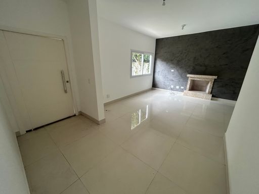 A sala em dois ambientes com lareira proporciona aconchego, enquanto o living integrado à cozinha planejada garante praticidade no dia a dia. A área íntima conta com uma suíte master com closet e varanda.