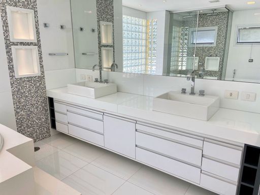 • Suíte master com 60 m², closet, banheira de hidromassagem, dois chuveiros e duas pias;