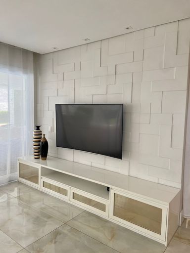 A casa é inteligente e automatizada (sistema Alexa), permitindo controle remoto pelo celular de: