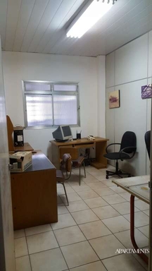 Prédio comercial com 242m² de área de escritório, com pequena recepção no térreo, 1º piso 3 salas, pequena cozinha, 4 wc e copa. 2º piso 2 salas e 2 wc. Galpão industrial com 601m² pé direito de 8 m . Mezanino de 114m².