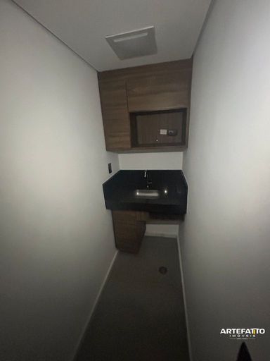 Prédio tem um auditório e vagas rotativas para clientes com manobrista.