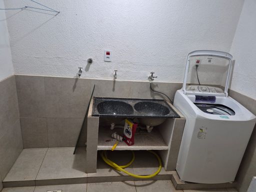 Piso Inferior: Garagem para 2 carros, hall de entrada e uma sala muito grande, que pode ser usada como ponto comercial (já foi um salão de cabeleireiro), banheiro social . Cozinha muito espaçosa com duas áreas.