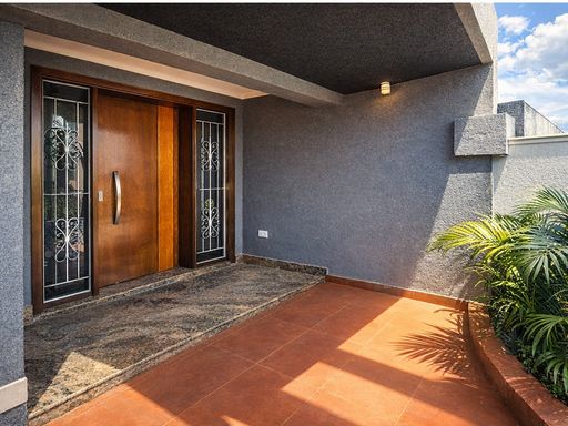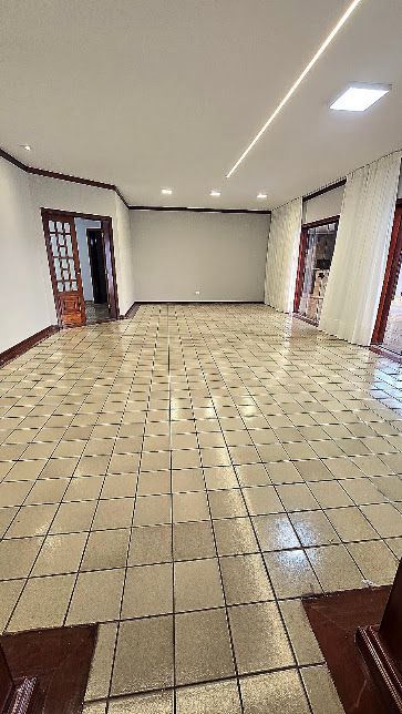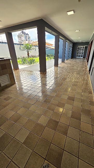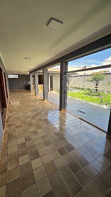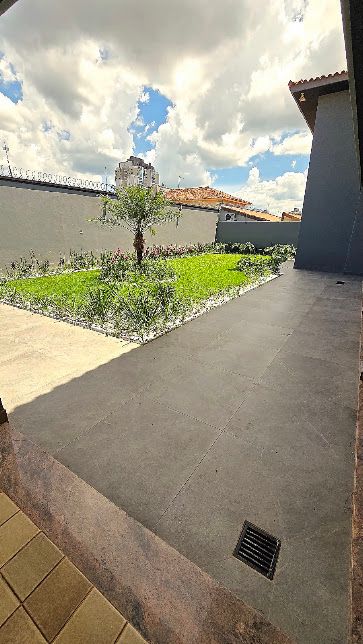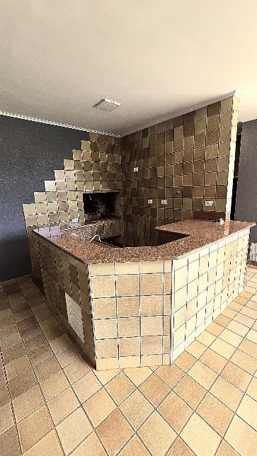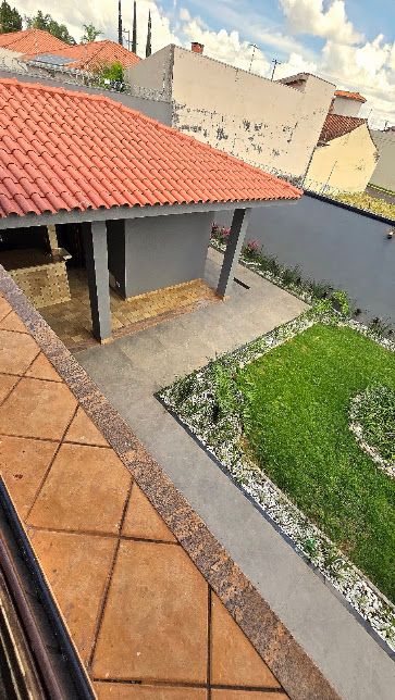 - Área de churrasco numa ampla varanda com jardim/quintal
