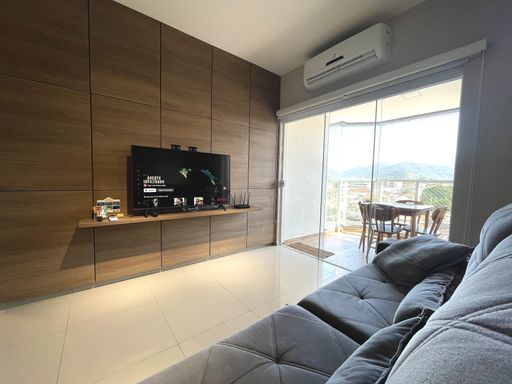 Apartamento completo e muito bem distribuído, composto por 2 dormitórios, sendo 1 suíte, além de banheiro social. A área social conta com sala de TV e jantar integradas, proporcionando um ambiente confortável e funcional. A cozinha com balcão americano traz praticidade ao dia a dia, além de contar com área de serviço separada. Os dormitórios estão equipados com ar-condicionado, e o imóvel é totalmente planejado, com armários sob medida em todos os ambientes, garantindo organização e aproveitamento inteligente dos espaços. Destaque para a varanda gourmet com vista para as montanhas, equipada com tela de proteção, ideal para momentos de lazer e relaxamento. Diferenciais: Mobiliado e com planejados Ar-condicionado nos dormitórios Varanda gourmet com vista para a natureza Tela de proteção Condomínio: Piscina Espaço gourmet Armário náutico Zeladoria Portão eletrônico Conta ainda com 2 vagas de garagem, oferecendo mais comodidade e segurança. Excelente opção para quem busca conforto, praticidade e qualidade de vida.