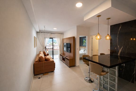 Apartamento Moderno à Venda no Centro de Ubatuba com Piscina e Churrasqueira Apartamento moderno e aconchegante no Centro de Ubatuba – 48 m² Apartamento completo, com design contemporâneo e excelente aproveitamento dos espaços, localizado no Centro de Ubatuba, com fácil acesso às praias e próximo à Arena Ubatuba. Com 48 m² bem distribuídos, o imóvel acomoda até 3 hóspedes com conforto, contando com 1 dormitório com cama queen e sofá-cama na sala. Ideal tanto para lazer quanto para investimento em locação por temporada. Destaques do imóvel: Sala aconchegante com sofá-cama, Smart TV com Netflix, Wi-Fi rápido e luminária de chão Cozinha integrada e equipada com ilha, cooktop por indução, geladeira, micro-ondas, cafeteira, liquidificador, Air Fryer, filtro de água gelada, utensílios e 4 cadeiras suspensas Dormitório com cama queen, roupas de cama, arara com cabides, mesa de cabeceira e painel em LED Banheiro completo com toalhas, secador de cabelo, shampoo, sabonete, chuveiro Acqua Duo e nicho Varanda com vista para as montanhas, mesa para quatro pessoas, pia e churrasqueira a carvão Área de serviço com pia e varal 1 vaga de garagem coberta Condomínio com lazer completo: Piscina semiolímpica Piscina adulto e infantil Piscina aquecida e coberta Solarium Academia Salão de jogos Salão de festas Espaço gourmet com churrasqueira Bicicletário Espaço pet Elevadores Apartamento funcional, moderno e muito bem localizado, perfeito para quem busca conforto, praticidade e qualidade de vida no litoral.