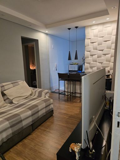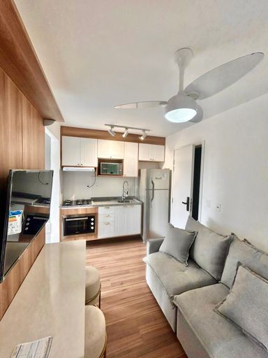 Apartamento de 48m² Reformado Piso laminado 2 dormitórios sendo um deles com guarda roupa modulado. 1 banheiro com armário Sala com cortineiro e cortina em linho. Cozinha com Lavanderia Armários na cozinha e torneira com água quente, Fogão cooktop 1 vaga de garagem coberta Gás e água incluso no condomínio O condomínio possui quadra de esportes e espaço para crianças.
