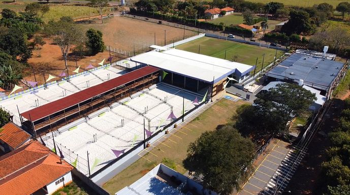02 Casas com um dormitório, sala e banheiro cada 11 quadra de beach tennis 02 Campos de futebol Estrutura para Restaurante e Lanchonete Espaço para Academia 02 Lojas comerciais Salão de Evento Piscina Vestiários 02 Escritórios Administrativos Mais de 30 vagas de estacionamento