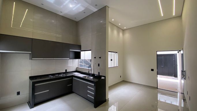 125 m² de terreno 100 m² de construção 03 Dormitórios, sendo 01 suíte com closet Cozinha Sala de TV Área Gourmet com Churrasqueira 02 Vagas de garagem cobertas