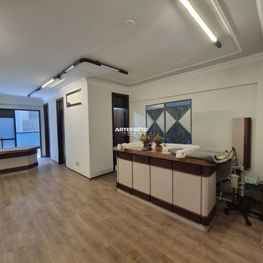 Sala ampla com espaço descoberto Copa 02 banheiros 01 vaga de garagem coberta Elevador Recepção