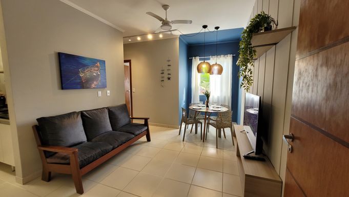 A poucos metros da orla... Este apartamento conta com dois dormitórios com ar condicionado recém instalados, varanda gourmet com churrasqueira, sala, cozinha, área de serviço, 1 vaga de garage coberta, armário náutico. O imóvel está à venda com todos os móveis e eletrodomésticos apresentados nas fotos, com exceção dos quadros. O prédio ainda conta em sua área comum de lazer, com piscina adulto e infantil, sauna, churrasqueira e elevador para melhor comodidade. Excelente empreendimento para quem quer passar férias com família, amigos ou ainda para intercalar com aluguel de temporada.